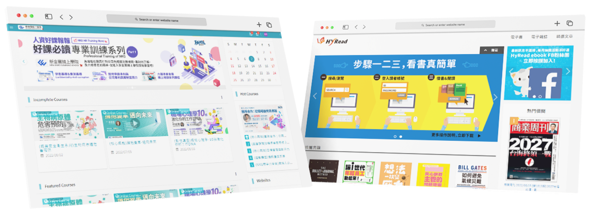 金寶電子與HyRead 電子書店合作,建置集團線上圖書館,提供同仁更多的電子書閱讀管道。線上圖書館館內有多樣化的雜誌與書籍,提供同仁自我研習及進修,除了專業知識的強化之外,透過科技的運用搭配手機app,讓同仁隨時隨地都能學習,利用零碎時間學習,提升碎片式學習之成效。